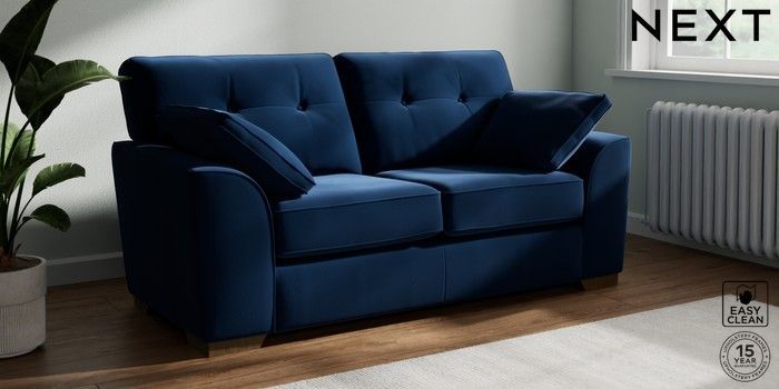 7.2.10 Buy Stamford Buttoned Back 2 Seater Sofa Plush Velvet Easy Clean Navy Blue Large Square Angle - Mid from the Next UK online shop Click here to use our accessible website