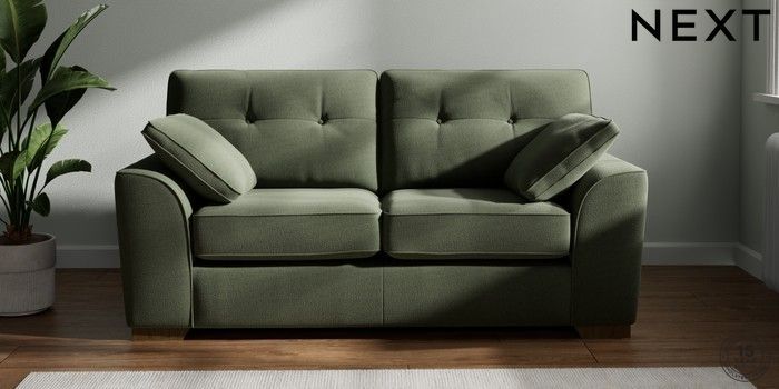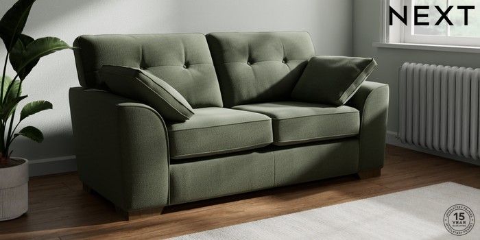 7.2.10 Buy Stamford Buttoned Back 2 Seater Sofa Relaxed Linen Look Dark Green Large Square Angle - Mid from the Next UK online shop Click here to use our accessible website