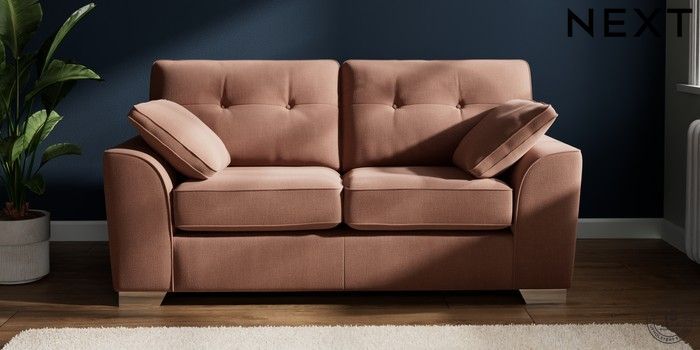 7.2.10 Buy Stamford Buttoned Back 2 Seater Sofa Relaxed Linen Look Light Rust Brown Large Square Angle - Chrome Metal from the Next UK online shop Click here to use our accessible website