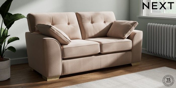 7.2.10 Buy Stamford Buttoned Back 2 Seater Sofa Relaxed Linen Look Mid Natural Large Square Angle - Light from the Next UK online shop Click here to use our accessible website