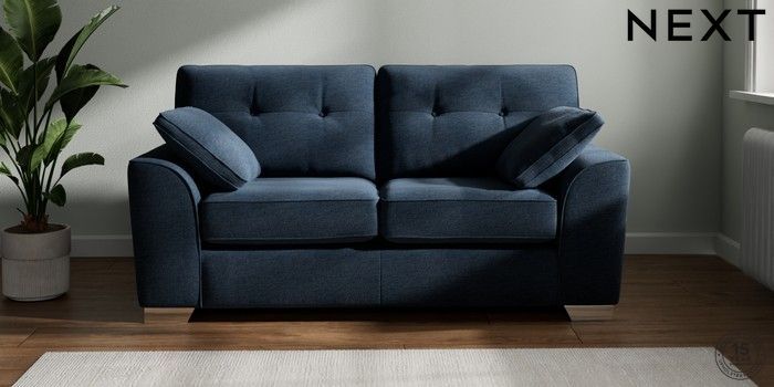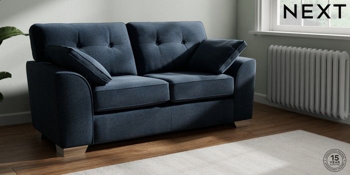 7.2.6 Buy Stamford Buttoned Back 2 Seater Sofa Ripple Chenille Dark Blue Large Square Angle - Chrome Metal from the Next UK online shop Click here to use our accessible website