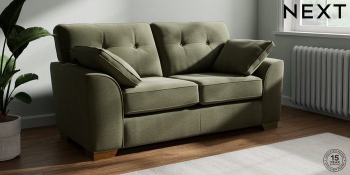 7.2.10 Buy Stamford Buttoned Back 2 Seater Sofa Ripple Chenille Mid Moss Green Large Square Angle - Brushed Brass from the Next UK online shop Click here to use our accessible website