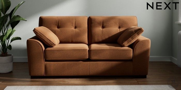 7.2.10 Buy Stamford Buttoned Back 2 Seater Sofa Ripple Chenille Mid Rust Brown Large Square Angle - Dark from the Next UK online shop Click here to use our accessible website