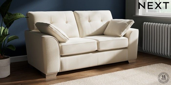 7.2.10 Buy Stamford Buttoned Back 2 Seater Sofa Ripple Chenille Oyster Large Square Angle - Chrome Metal from the Next UK online shop Click here to use our accessible website