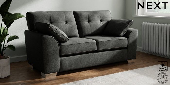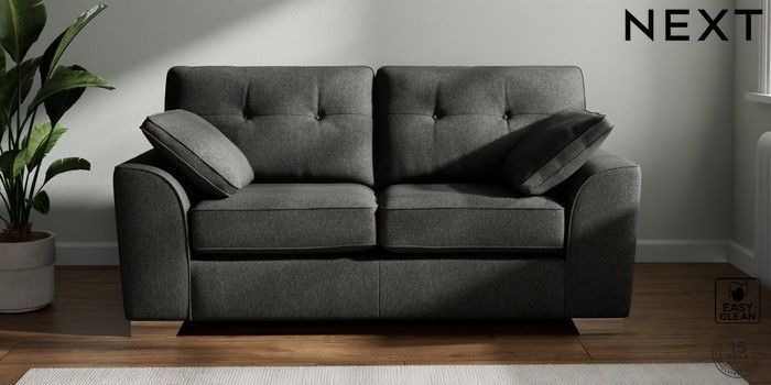 7.2.10 Buy Stamford Buttoned Back 2 Seater Sofa Tweedy Blend Easy Clean Charcoal Grey Large Square Angle - Chrome Metal from the Next UK online shop Click here to use our accessible website