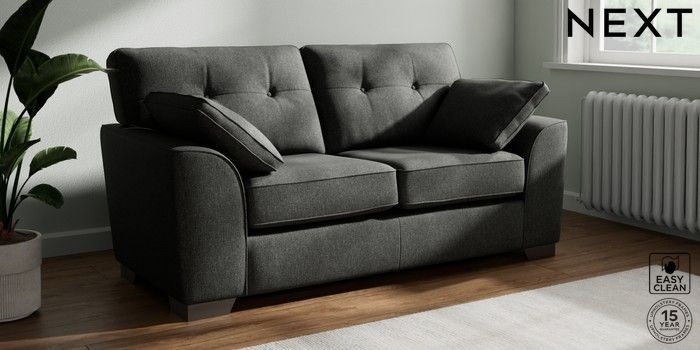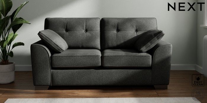 7.3.1 Buy Stamford Buttoned Back 2 Seater Sofa Tweedy Blend Easy Clean Charcoal Grey Large Square Angle - Gunmetal from the Next UK online shop Click here to use our accessible website