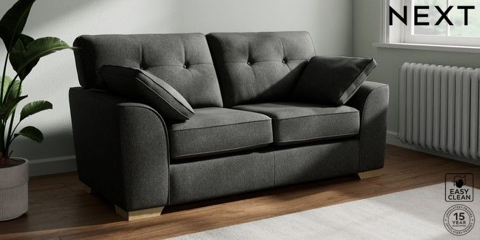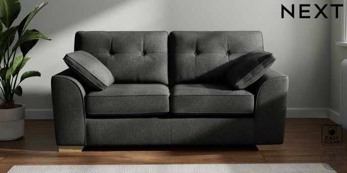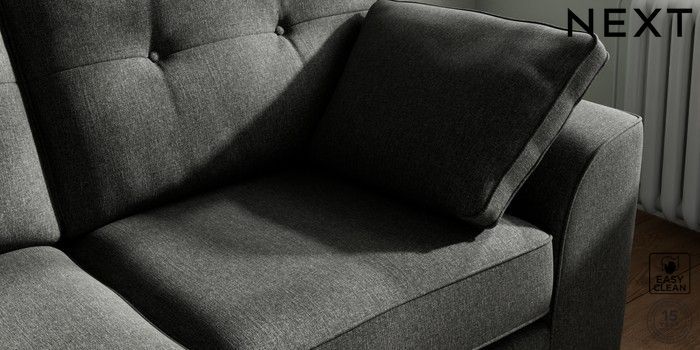 7.2.10 Buy Stamford Buttoned Back 2 Seater Sofa Tweedy Blend Easy Clean Charcoal Grey Large Square Angle - Light from the Next UK online shop Click here to use our accessible website