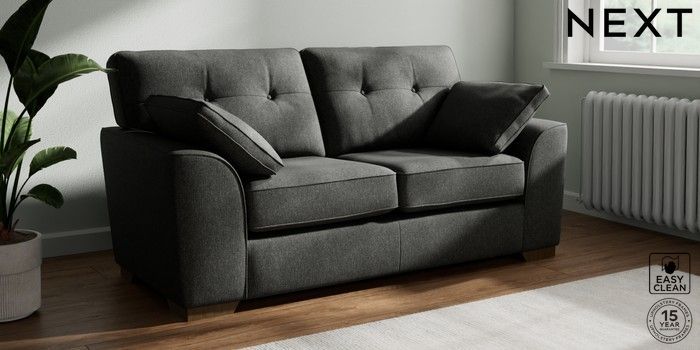 7.2.10 Buy Stamford Buttoned Back 2 Seater Sofa Tweedy Blend Easy Clean Charcoal Grey Large Square Angle - Mid from the Next UK online shop Click here to use our accessible website