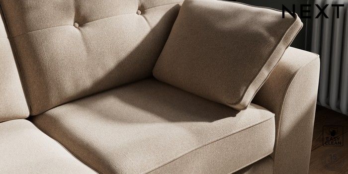7.3.1 Buy Stamford Buttoned Back 2 Seater Sofa Tweedy Blend Easy Clean Light Dove Natural Large Square Angle - Brushed Brass from the Next UK online shop Click here to use our accessible website