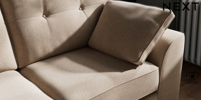 7.2.10 Buy Stamford Buttoned Back 2 Seater Sofa Tweedy Blend Easy Clean Light Dove Natural Large Square Angle - Mid from the Next UK online shop Click here to use our accessible website