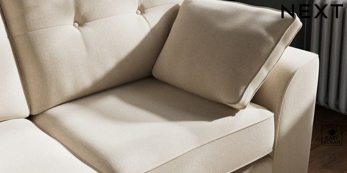 7.2.10 Buy Stamford Buttoned Back 2 Seater Sofa Tweedy Blend Easy Clean Oyster Large Square Angle - Chrome Metal from the Next UK online shop Click here to use our accessible website