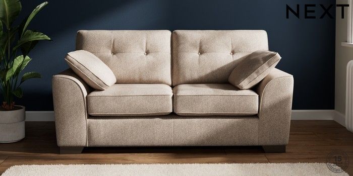 7.2.6 Buy Stamford Buttoned Back 2 Seater Sofa Tweedy Chenille Mid Natural Large Square Angle - Gunmetal from the Next UK online shop Click here to use our accessible website