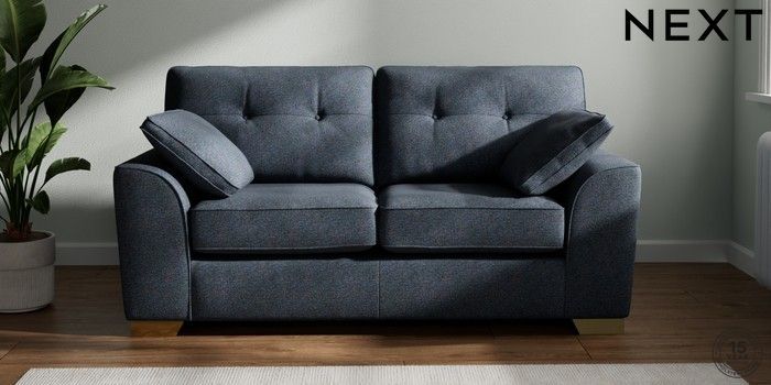 7.2.6 Buy Stamford Buttoned Back 2 Seater Sofa Tweedy Chenille Navy Blue Large Square Angle - Brushed Brass from the Next UK online shop Click here to use our accessible website