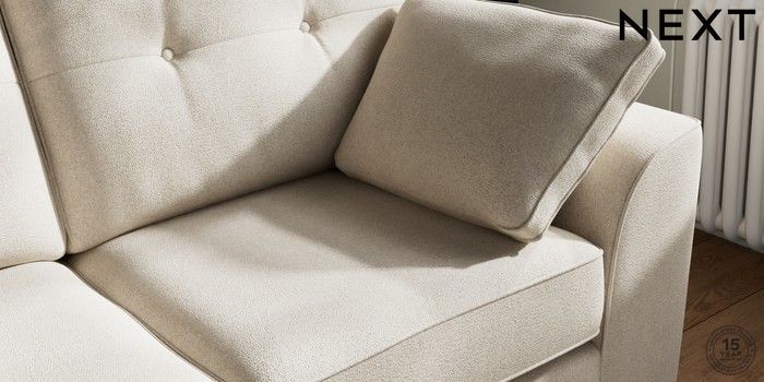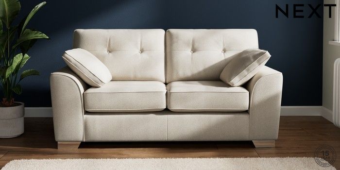 7.2.10 Buy Stamford Buttoned Back 2 Seater Sofa Tweedy Chenille Oyster Large Square Angle - Chrome Metal from the Next UK online shop Click here to use our accessible website