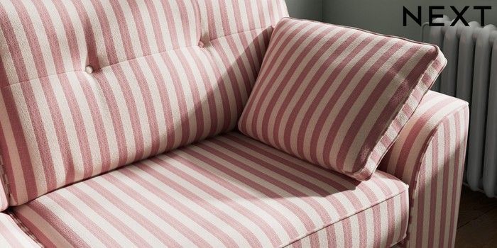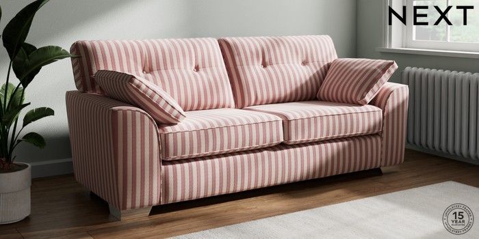 7.3.1 Buy Stamford Buttoned Back 3 Seater Sofa Bold Chenille Stripe Dark Pink Large Square Angle - Chrome Metal from the Next UK online shop Click here to use our accessible website