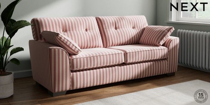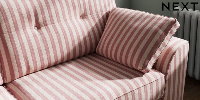 7.3.1 Buy Stamford Buttoned Back 3 Seater Sofa Bold Chenille Stripe Dark Pink Large Square Angle - Gunmetal from the Next UK online shop Click here to use our accessible website