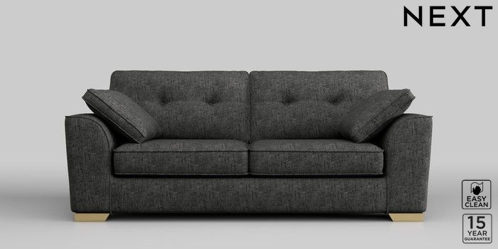 6.10.9 Buy Stamford Buttoned Back 3 Seater Sofa Boucle Weave Easy Clean Charcoal Grey Large Square Angle - Brushed Brass from the Next UK online shop Click here to use our accessible website