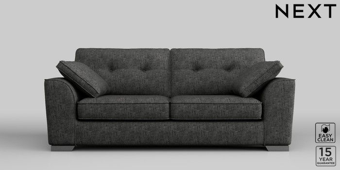 6.10.9 Buy Stamford Buttoned Back 3 Seater Sofa Boucle Weave Easy Clean Charcoal Grey Large Square Angle - Gunmetal from the Next UK online shop Click here to use our accessible website