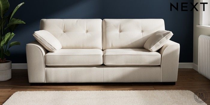 7.3.1 Buy Stamford Buttoned Back 3 Seater Sofa Chenille Stripe Natural Large Square Angle - Dark from the Next UK online shop Click here to use our accessible website