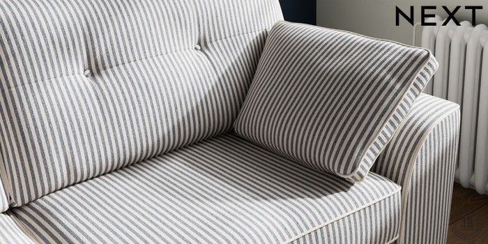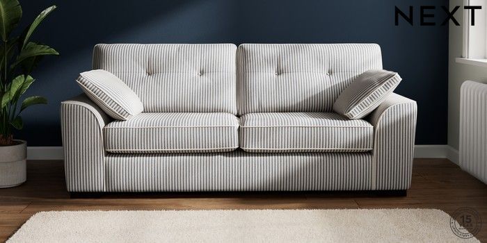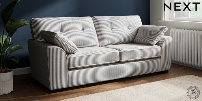 7.3.1 Buy Stamford Buttoned Back 3 Seater Sofa Chenille Stripe Slate Blue Large Square Angle - Dark from the Next UK online shop Click here to use our accessible website