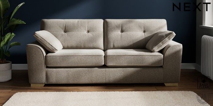 7.2.10 Buy Stamford Buttoned Back 3 Seater Sofa Chunky Boucle Easy Clean Dove Large Square Angle - Light from the Next UK online shop Click here to use our accessible website