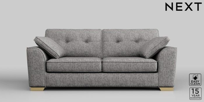 6.11.4 Buy Stamford Buttoned Back 3 Seater Sofa Chunky Boucle Easy Clean Light Grey Large Square Angle - Brushed Brass from the Next UK online shop Click here to use our accessible website