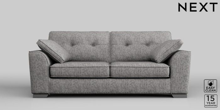 6.11.4 Buy Stamford Buttoned Back 3 Seater Sofa Chunky Boucle Easy Clean Light Grey Large Square Angle - Gunmetal from the Next UK online shop Click here to use our accessible website