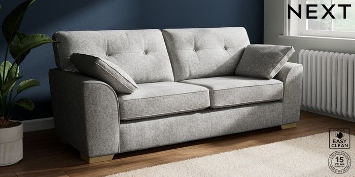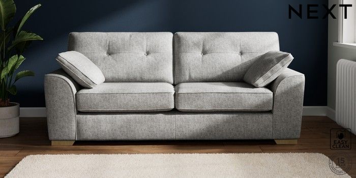 7.2.10 Buy Stamford Buttoned Back 3 Seater Sofa Chunky Boucle Easy Clean Light Grey Large Square Angle - Light from the Next UK online shop Click here to use our accessible website