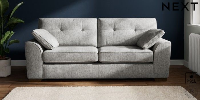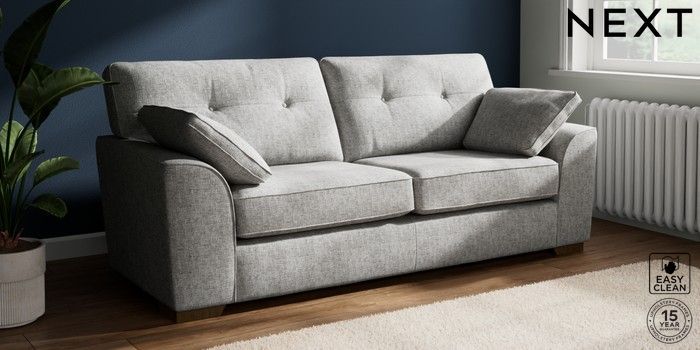 7.2.10 Buy Stamford Buttoned Back 3 Seater Sofa Chunky Boucle Easy Clean Light Grey Large Square Angle - Mid from the Next UK online shop Click here to use our accessible website