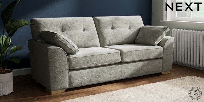 7.2.10 Buy Stamford Buttoned Back 3 Seater Sofa Chunky Chenille Light Grey Large Square Angle - Light from the Next UK online shop Click here to use our accessible website