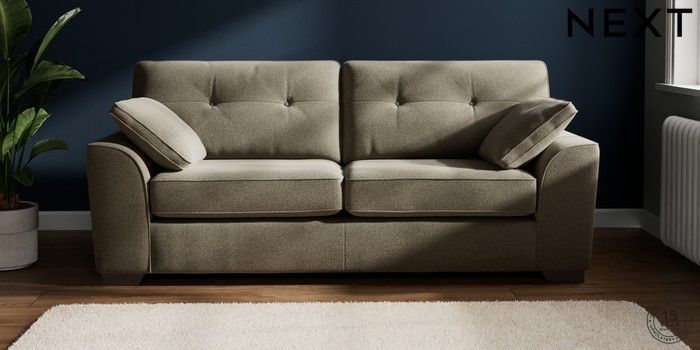 7.2.10 Buy Stamford Buttoned Back 3 Seater Sofa Chunky Marl Light Olive Green Large Square Angle - Gunmetal from the Next UK online shop Click here to use our accessible website