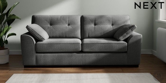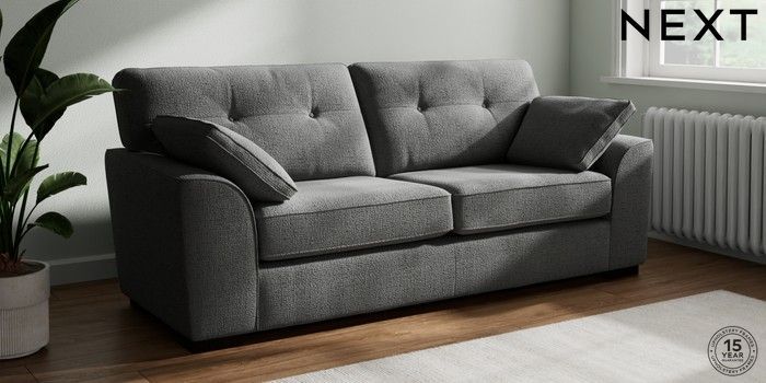 7.2.10 Buy Stamford Buttoned Back 3 Seater Sofa Chunky Texture Dark Grey Large Square Angle - Dark from the Next UK online shop Click here to use our accessible website