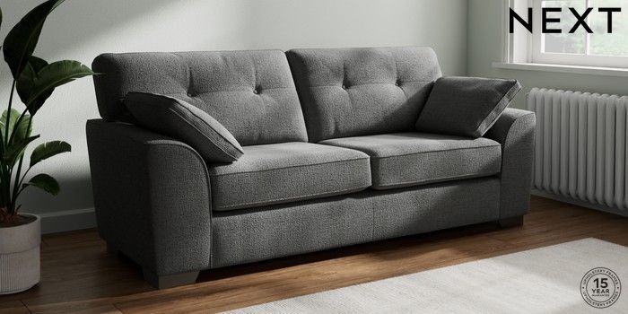 7.2.10 Buy Stamford Buttoned Back 3 Seater Sofa Chunky Texture Dark Grey Large Square Angle - Gunmetal from the Next UK online shop Click here to use our accessible website