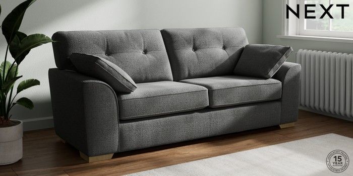 7.2.10 Buy Stamford Buttoned Back 3 Seater Sofa Chunky Texture Dark Grey Large Square Angle - Light from the Next UK online shop Click here to use our accessible website