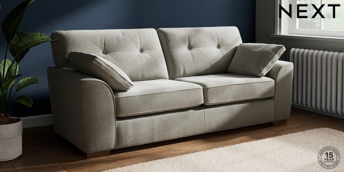 7.2.10 Buy Stamford Buttoned Back 3 Seater Sofa Chunky Texture Dove Large Square Angle - Mid from the Next UK online shop Click here to use our accessible website