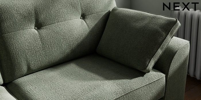 7.2.10 Buy Stamford Buttoned Back 3 Seater Sofa Chunky Texture Mid Forest Green Large Square Angle - Gunmetal from the Next UK online shop Click here to use our accessible website