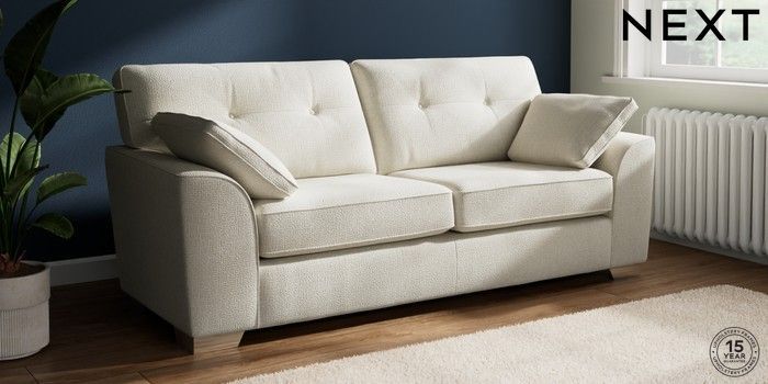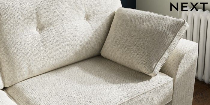 7.2.10 Buy Stamford Buttoned Back 3 Seater Sofa Chunky Texture Oyster Large Square Angle - Chrome Metal from the Next UK online shop Click here to use our accessible website