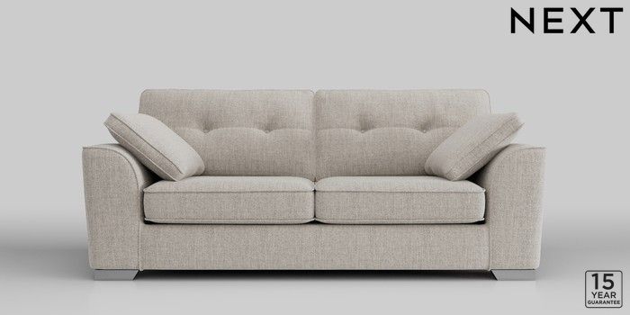 6.10.9 Buy Stamford Buttoned Back 3 Seater Sofa Chunky Weave Dove Grey Large Square Angle - Chrome Metal from the Next UK online shop Click here to use our accessible website