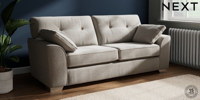 7.2.10 Buy Stamford Buttoned Back 3 Seater Sofa Chunky Weave Dove Grey Large Square Angle - Chrome Metal from the Next UK online shop Click here to use our accessible website