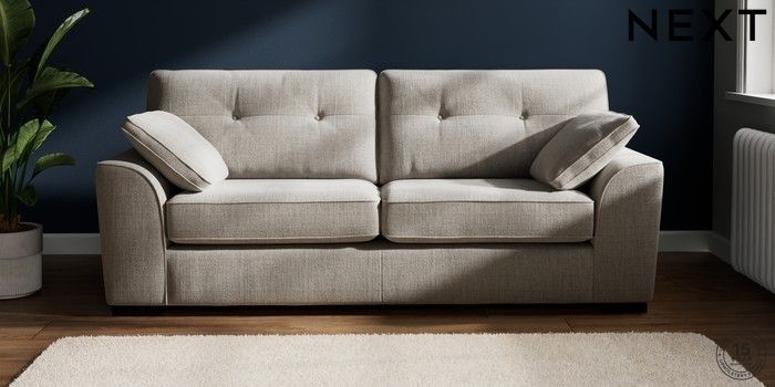 7.2.10 Buy Stamford Buttoned Back 3 Seater Sofa Chunky Weave Dove Grey Large Square Angle - Dark from the Next UK online shop Click here to use our accessible website