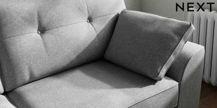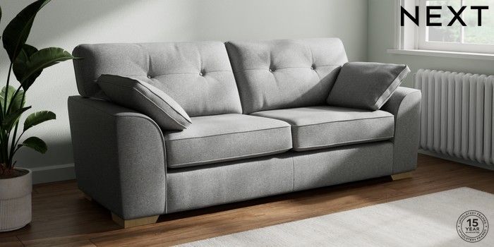 7.2.10 Buy Stamford Buttoned Back 3 Seater Sofa Chunky Weave Mid Grey Large Square Angle - Light from the Next UK online shop Click here to use our accessible website