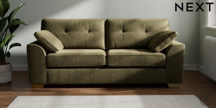 7.2.6 Buy Stamford Buttoned Back 3 Seater Sofa Cotswold Chenille Dark Green Large Square Angle - Brushed Brass from the Next UK online shop Click here to use our accessible website