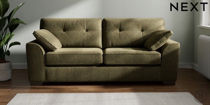 7.2.6 Buy Stamford Buttoned Back 3 Seater Sofa Cotswold Chenille Dark Green Large Square Angle - Gunmetal from the Next UK online shop Click here to use our accessible website