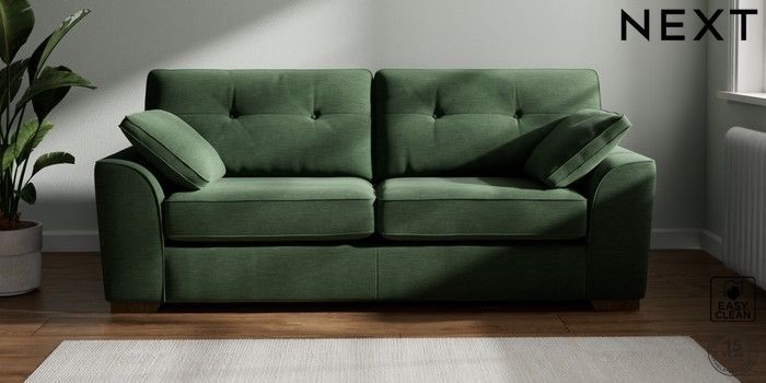 7.2.6 Buy Stamford Buttoned Back 3 Seater Sofa Fine Chenille Easy Clean Mid Khaki Green Large Square Angle - Mid from the Next UK online shop Click here to use our accessible website