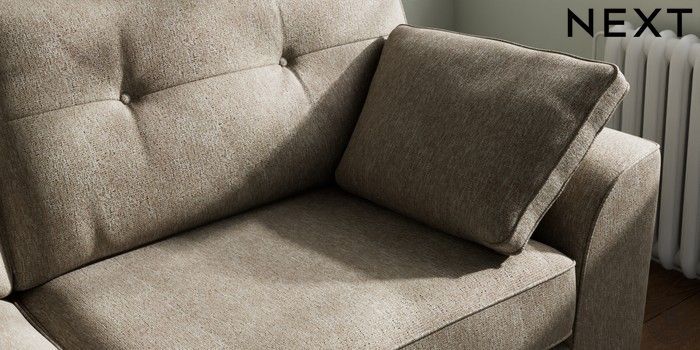 7.2.6 Buy Stamford Buttoned Back 3 Seater Sofa Cotswold Chenille Mid Mink Brown Large Square Angle - Brushed Brass from the Next UK online shop Click here to use our accessible website