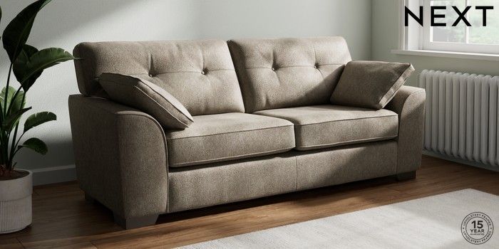 7.2.6 Buy Stamford Buttoned Back 3 Seater Sofa Cotswold Chenille Mid Mink Brown Large Square Angle - Gunmetal from the Next UK online shop Click here to use our accessible website