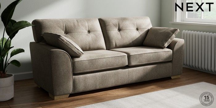 7.2.6 Buy Stamford Buttoned Back 3 Seater Sofa Cotswold Chenille Mid Mink Brown Large Square Angle - Light from the Next UK online shop Click here to use our accessible website