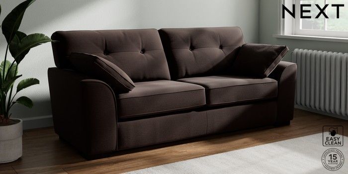 7.2.10 Buy Stamford Buttoned Back 3 Seater Sofa Fine Chenille Easy Clean Chocolate Brown Large Square Angle - Dark from the Next UK online shop Click here to use our accessible website
