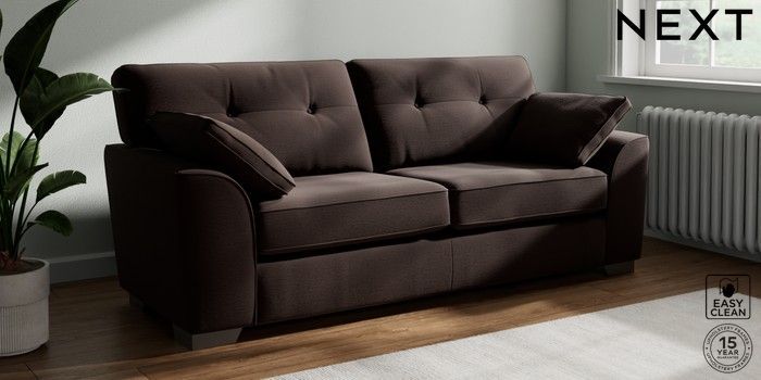 7.2.10 Buy Stamford Buttoned Back 3 Seater Sofa Fine Chenille Easy Clean Chocolate Brown Large Square Angle - Gunmetal from the Next UK online shop Click here to use our accessible website