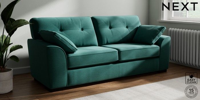 7.2.10 Buy Stamford Buttoned Back 3 Seater Sofa Fine Chenille Easy Clean Dark Juniper Green Large Square Angle - Dark from the Next UK online shop Click here to use our accessible website